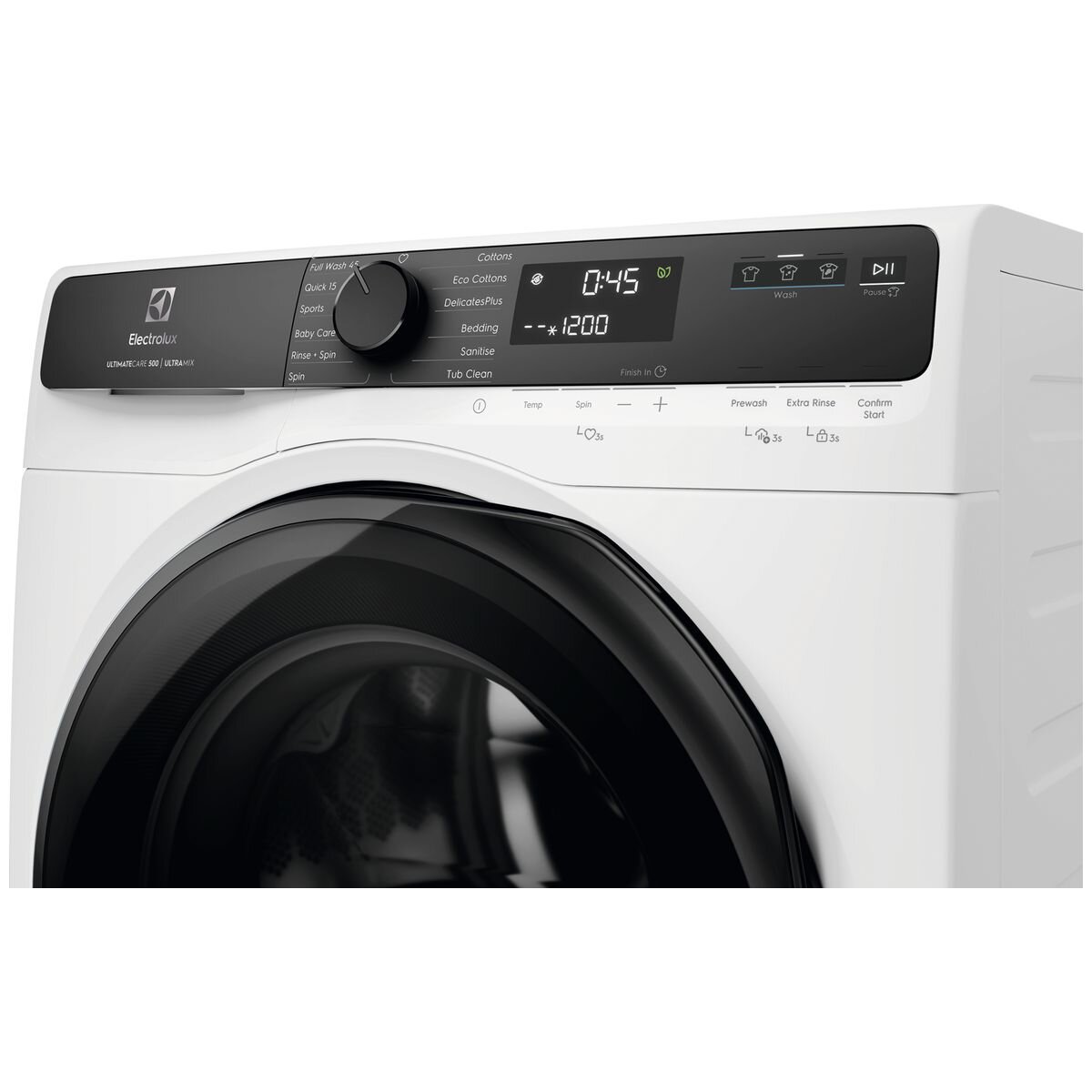 The Electrolux UltimateCare 500 8 kg front load washing machine combines efficient cleaning performance with thoughtful fabric care to make everyday laundry easier and more effective. Designed to wash a full 8 kg load in just 45 minutes with its Full Wash 45 cycle, it delivers faster, energy‑efficient washes at a gentle 30 °C while still maintaining high cleaning performance. Advanced UltraMix technology ensures detergent and softener are fully dissolved and activated before entering the drum, preventing visible residue on clothes for consistently clean results. With dedicated programs like DelicatesPlus and a Woolmark‑certified wool cycle, this washer provides gentle care that extends the life of delicate fabrics, and the Sanitise program, verified to reduce over 99 % of common bacteria and allergens using high‑temperature wash and steam, ensures hygienically clean laundry. The intuitive SmartSelect interface guides you to adjust settings for optimal water, energy and time use, while a stainless steel drum with up to 1200 rpm spin speed and a range of convenient options like delay start, child lock, and add‑clothes make this model a reliable and versatile choice for everyday laundry needs.