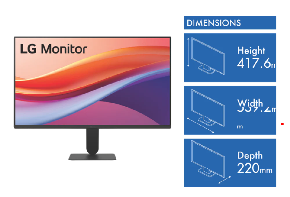 The LG 24″ IPS monitor with Full HD (1920 x 1080) resolution delivers sharp, vibrant visuals from virtually any angle. Whether you’re tackling tasks, browsing the web, or managing your inbox, this monitor helps you stay clear, focused, and productive.
